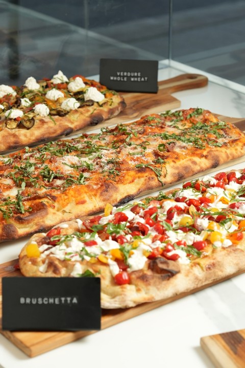 Our Pala pizzas are approximately 12” x 26” and are perfect for sharing! For catering events, pizzas can be cut into 8, 16, or 24 slices to suit your needs.
